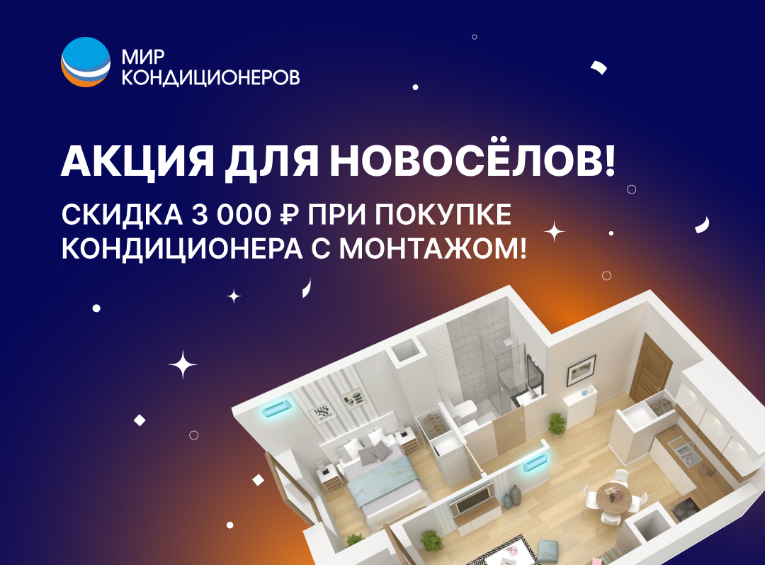 Дарим 3 000 ₽ на покупку кондиционера с монтажом всем жителям новостроек*!