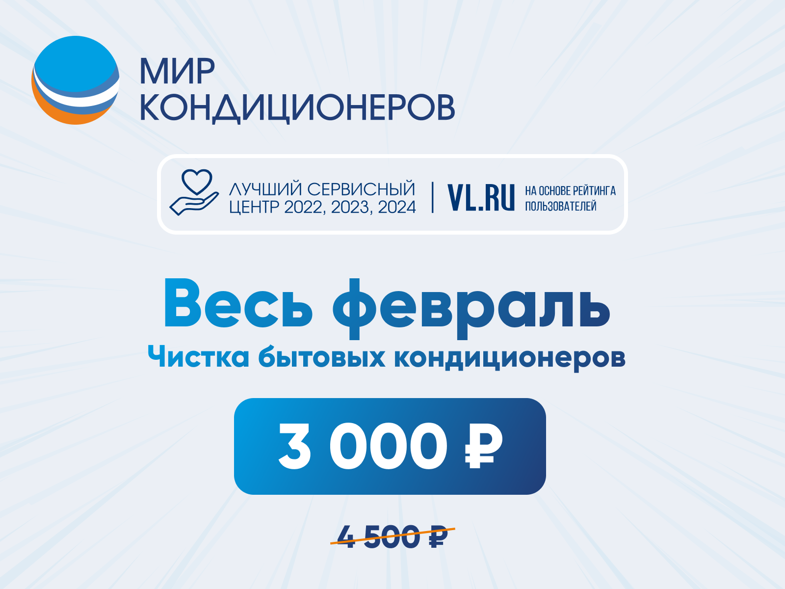Стоимость комплексной чистки кондиционеров в феврале составляет: 3 500 руб вместо 4 500 руб!