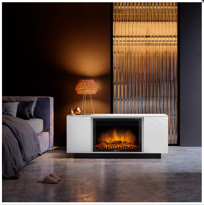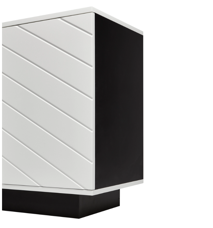 Модель Como сочетает в себе стиль и удобство. Вместительные боковые шкафчики делают портал функциональным местом для хранения. Косые линии фрезеровки визуально облегчают конструкцию, а за счет укороченного основания портал как будто парит над полом. Благодаря контрасту света и тени эта уникальная модель — беспроигрышный вариант для любого интерьера.