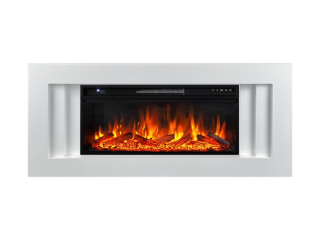 Каминокомплект Line 42 - Белый c очагом Vision 42 LOG LED с дровами (ширина 1400 мм) (модель с выставки)
