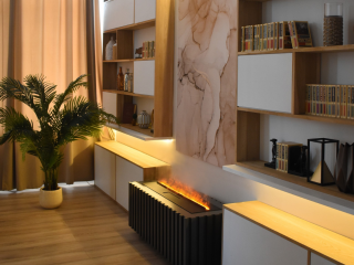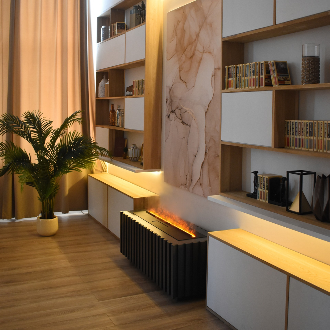 Чтобы украсить свой дом в современном или хай-тэк стиле, можно установить в одной из комнат каминокомплект Custom с очагом Schones Feuer 3D FireLine 1000. Строгий дизайн с плавными линиями портала Custom WT, изготовленного из МДФ, станет отличным дополнением к интерьеру.