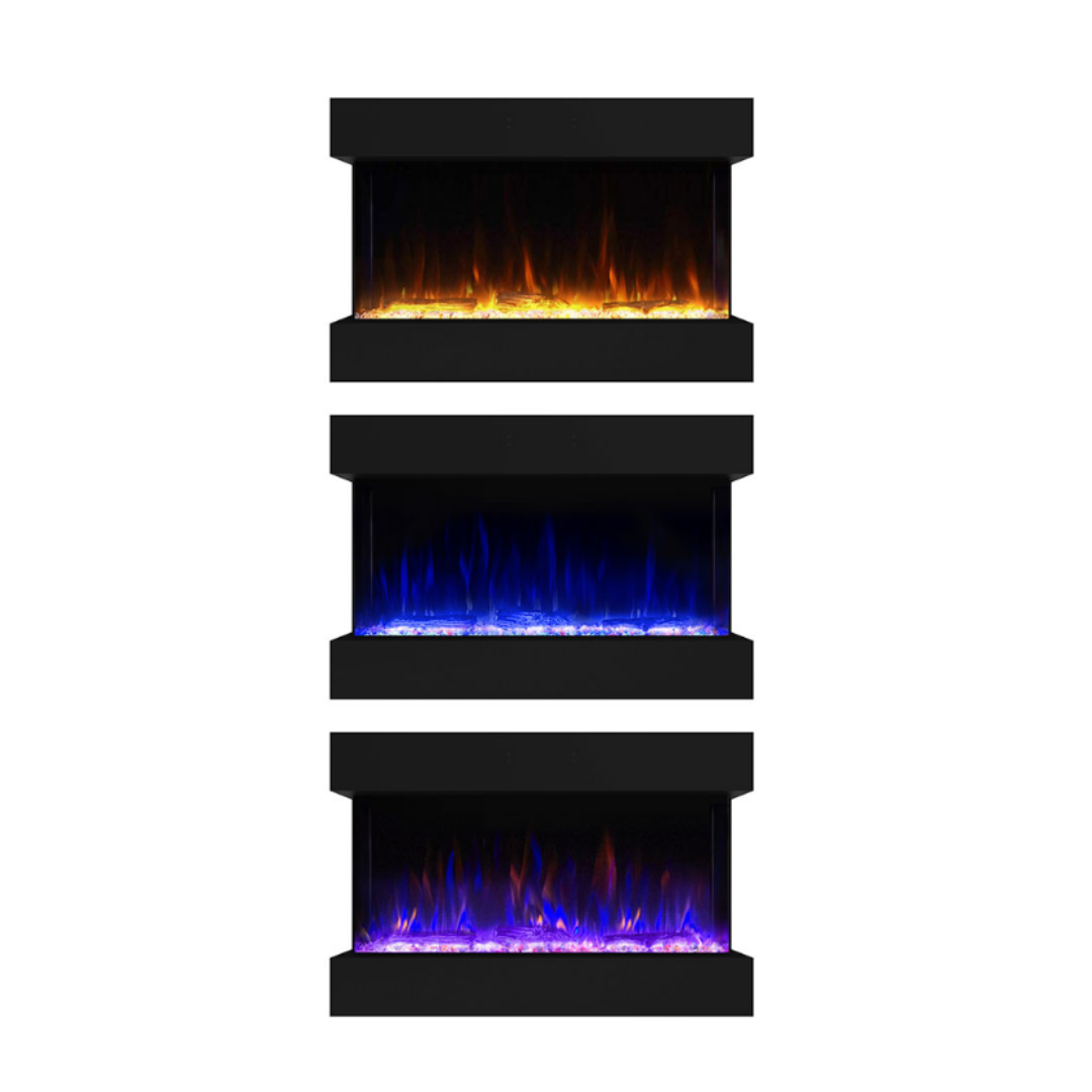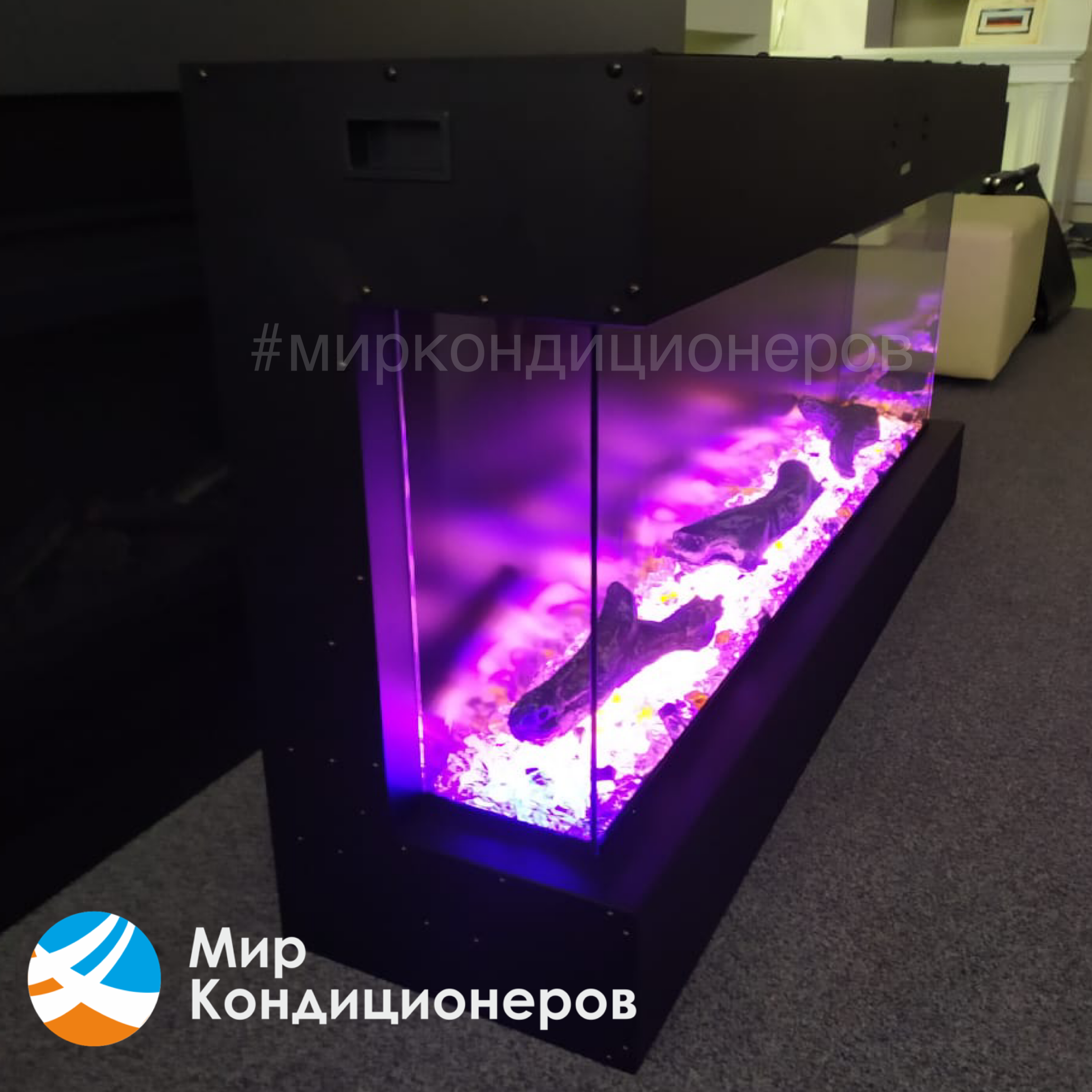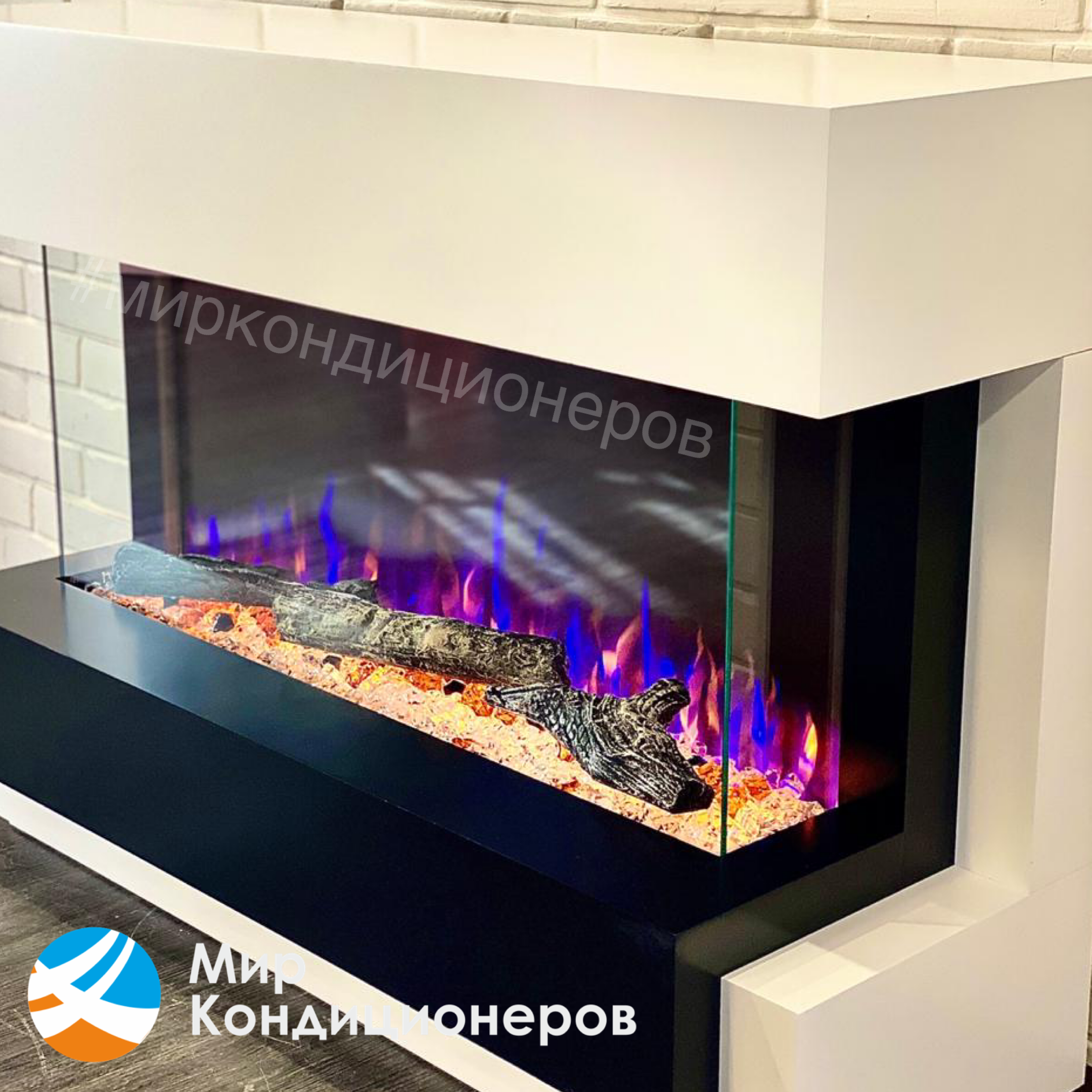 Электрические очаги серии Astra – встраиваемые линейные модели, имеющие три открытых стороны. Стильный, современный дизайн сделает их центральным элементом любого интерьера. Для декорации внутренней части очагов Astra используются кристаллы белого, черного и красного цветов, а также декоративные муляжи дров, похожие на настоящие поленья. Цвет пламени можно менять, выбирая из нескольких вариантов: оранжевого, синего или пурпурно-фиолетового. Также доступен режим поочередного переключения этих трех цветов, при этом языки пламени в камине остаются оранжево-синими, имитируя работу настоящего газового камина.