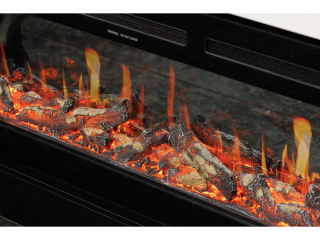 Очаг оснащен двумя уровнями обогрева, что позволяет выбрать наиболее комфортный режим. Есть возможность монтажа как на поверхность стены, так и встраивание в нишу. Эффект тлеющих углей придаёт атмосферу уюта и тепла.