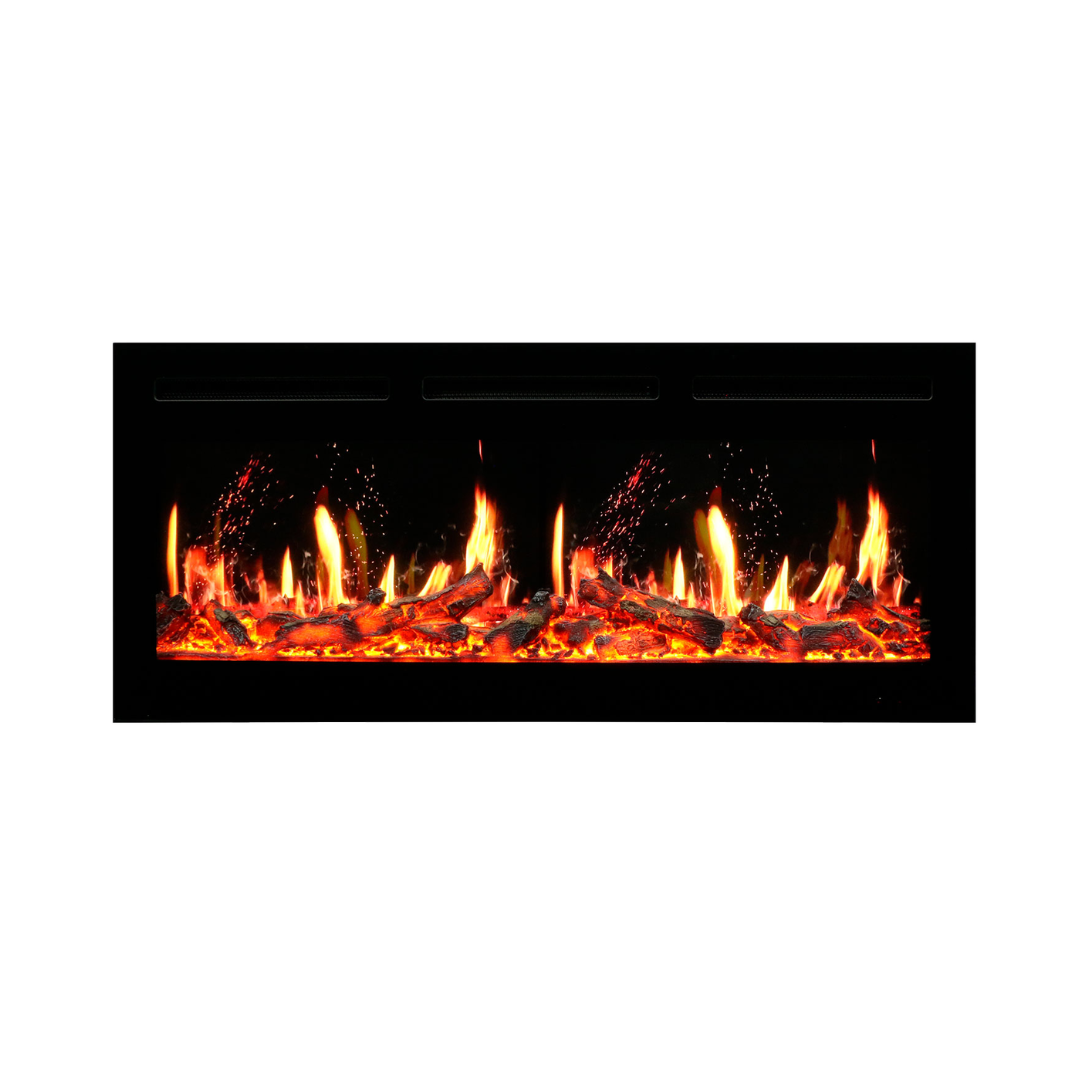 Очаг оснащен двумя уровнями обогрева, что позволяет выбрать наиболее комфортный режим. Есть возможность монтажа как на поверхность стены, так и встраивание в нишу. Эффект тлеющих углей придаёт атмосферу уюта и тепла.