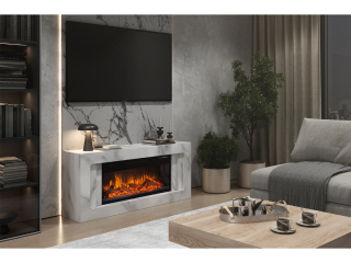 Каминокомплект Line 42 SFT Stone Touch - White Marble с очагом Vision 42 LOG LED с дровами (ширина 1485 мм)