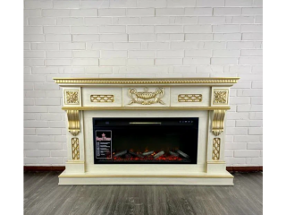 Каминокомплект Corsica-Слоновая кость/патина (1500 мм) с очагом Vision 42 LOG LED