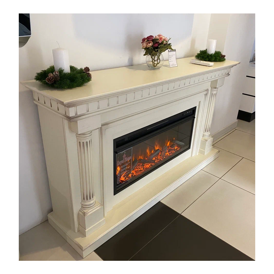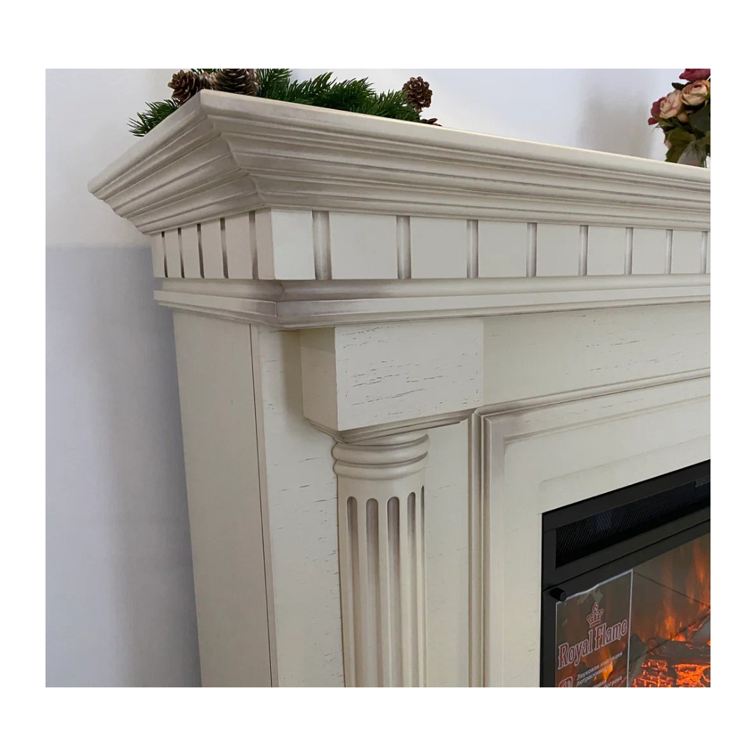 Каминокомплект Dallas - Слоновая кость с патиной с очагом Vision 42 LOG LED (с дровами)