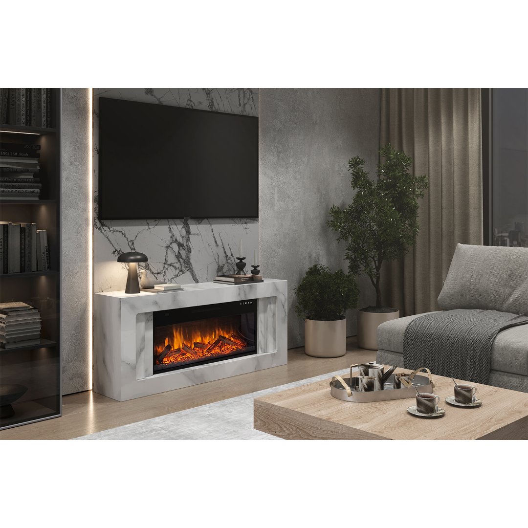 Каминокомплект Line 42 SFT Stone Touch - White Marble с очагом Vision 42 LOG LED с дровами (ширина 1485 мм)