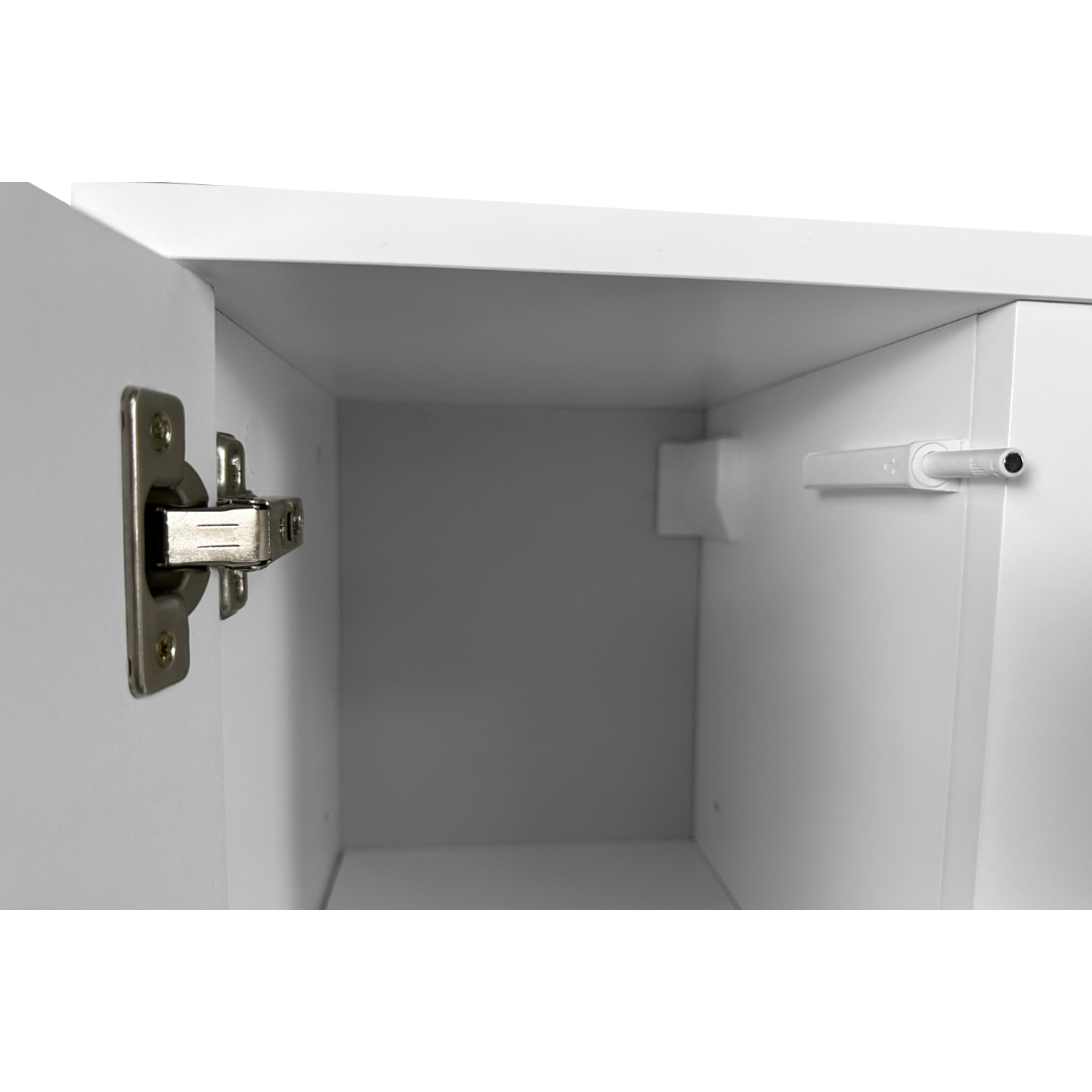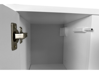 Шкафчики не имеют ручек: они открываются нажатием на них рукой за счет механизма push to open (Tip-On). Двери навешиваются на мебельные петли Clip-on, что обеспечивает легкость установки и регулировки.