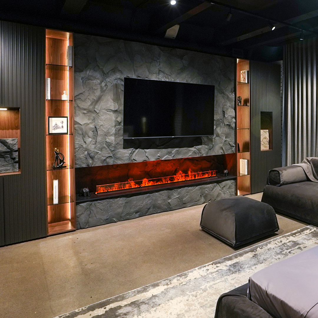 Очаг может быть встроен в нишу в стене, установлен в виде островной конструкции, а также смонтирован в мебельные элементы.