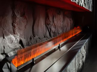 Реалистичное пламя образуется при проецировании лучей на пару. Такая имитация огня имеет довольно высокую степень схожести с реальным пламенем и является полностью безопасной для окружающих, а испаряющаяся вода, повышает влажность воздуха, создает комфортный микроклимат.