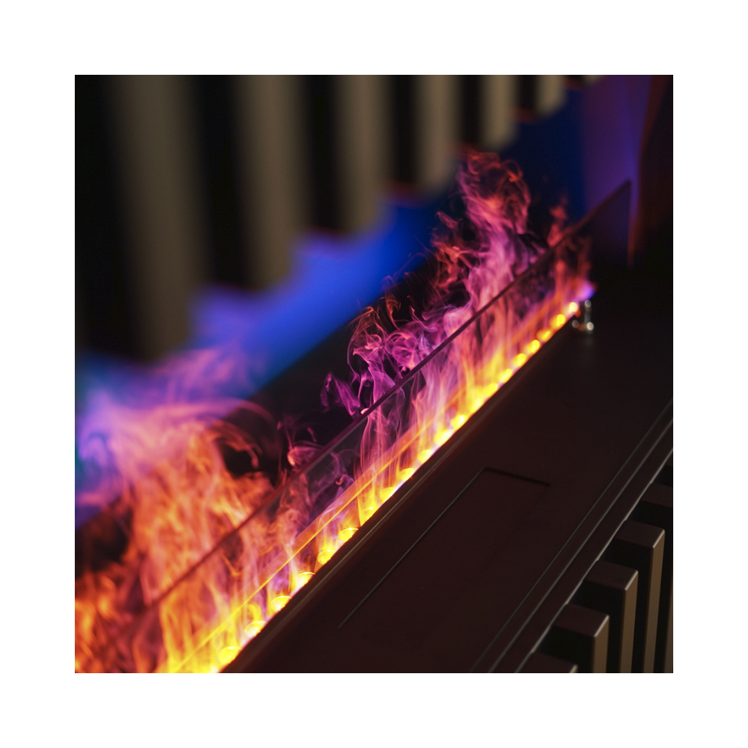 Реалистичное пламя образуется при проецировании лучей на пару. Такая имитация огня имеет довольно высокую степень схожести с реальным пламенем и является полностью безопасной для окружающих, а испаряющаяся вода, повышает влажность воздуха, создает комфортный микроклимат.