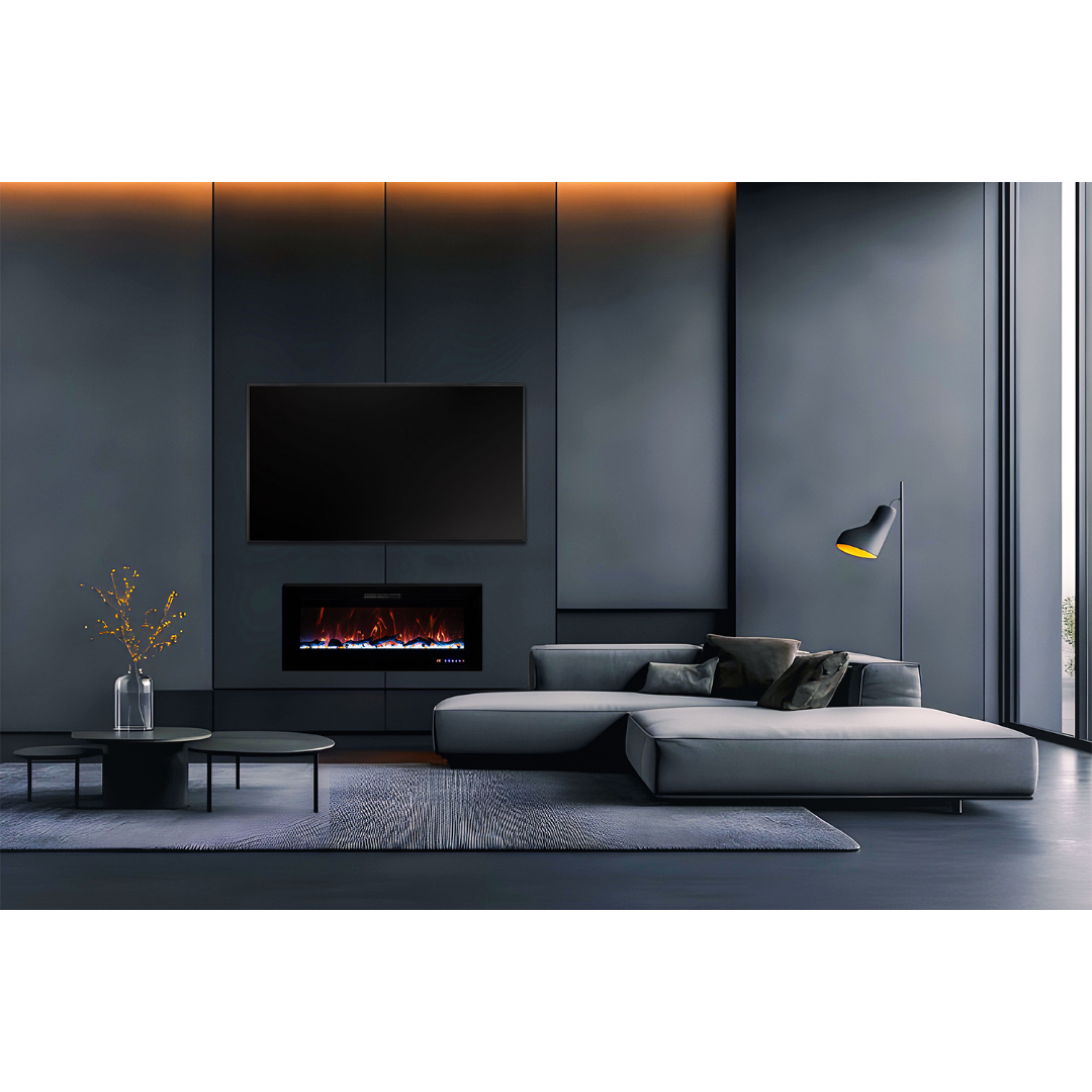 - Отличительные особенности: 13 цветов пламени, 13 вариантов подсветки дров, сенсорная панель управления