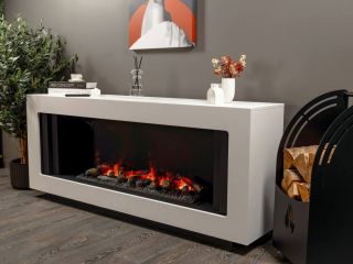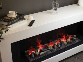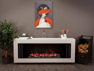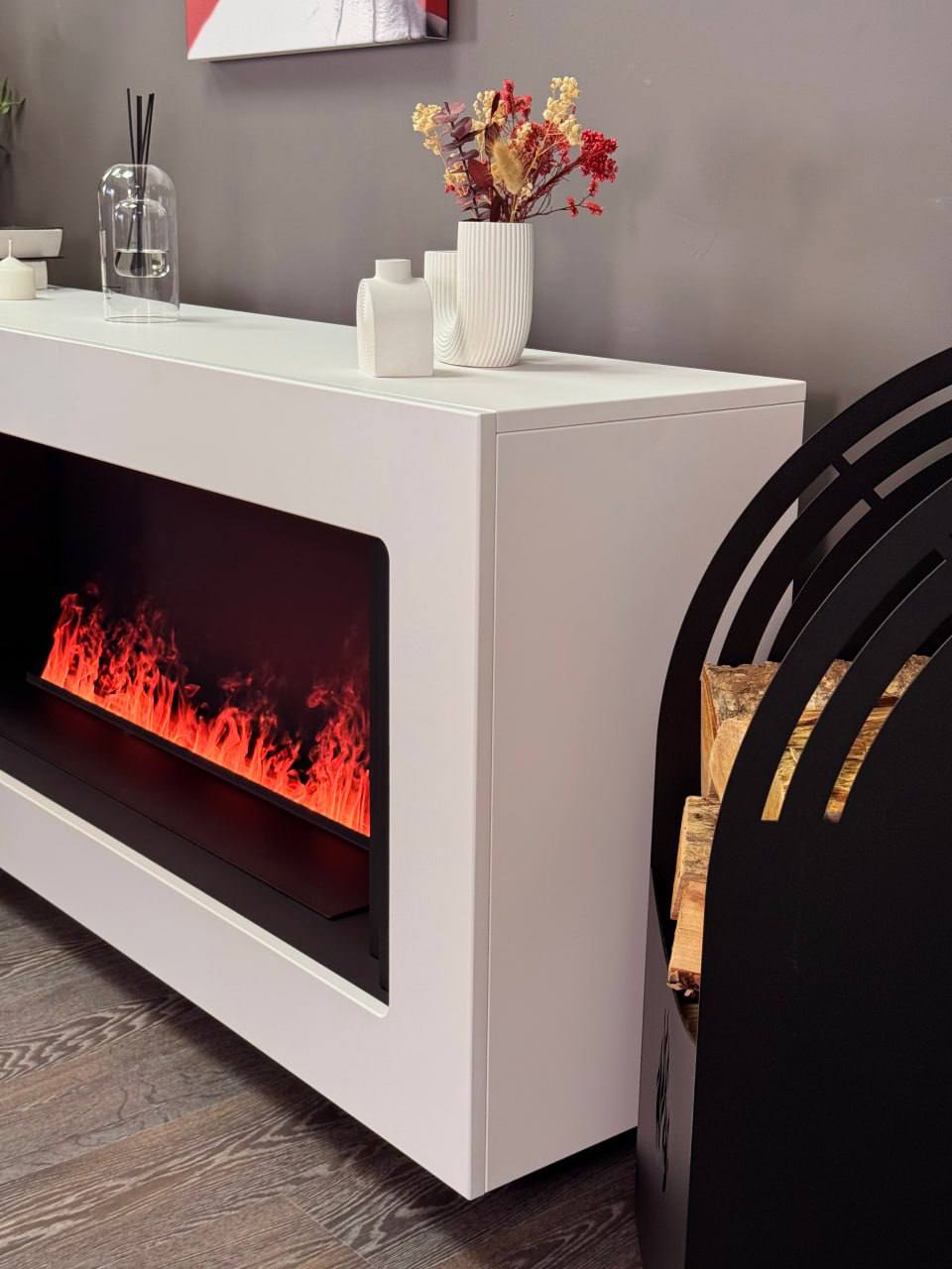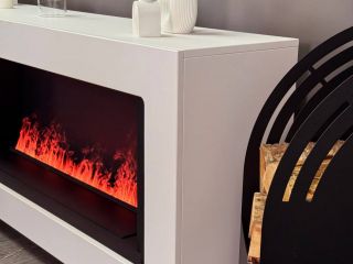 Design L1000RF 3D PS/LOG – это электрический камин с реалистичной 3D-имитацией пламени. Огонь в этой модели создается благодаря водяному пару, который подсвечивается светодиодными лампами. Жидкость для генерации пара заливается в съемные резервуары, в которые также можно добавить несколько капель нежирного ароматического масла для создания атмосферы.