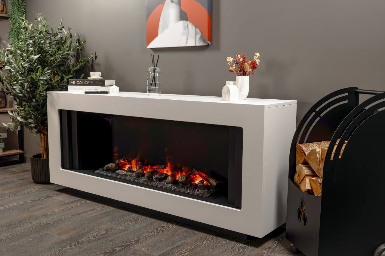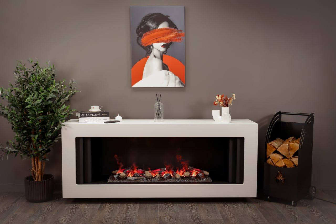 Модель Design L1000RF 3D PS/LOG отличается широкими возможностями для установки. Камин можно встроить как в портал или нишу, так и в некоторые предметы мебели, что выглядит необычно и ярко. Съемный муляж дров легко заменить на декоративную панель в комплекте, чтобы создать эффект линии огня.