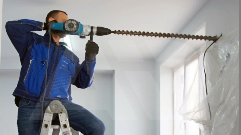Большинство монтажей осенью и зимой как раз и проводятся в два этапа. Мастера приезжают дважды. Первый выезд — на стадии активного ремонта, когда в квартире и так много пыли и строительного мусора. В этот момент прокладывают штробу — канал в стене глубиной 6–10 см и шириной 6–8 см. Желательно делать её как можно глубже, чтобы в будущем снизить риск повреждения скрытых труб и кабелей при сверлении стены, например, для полки или картины.